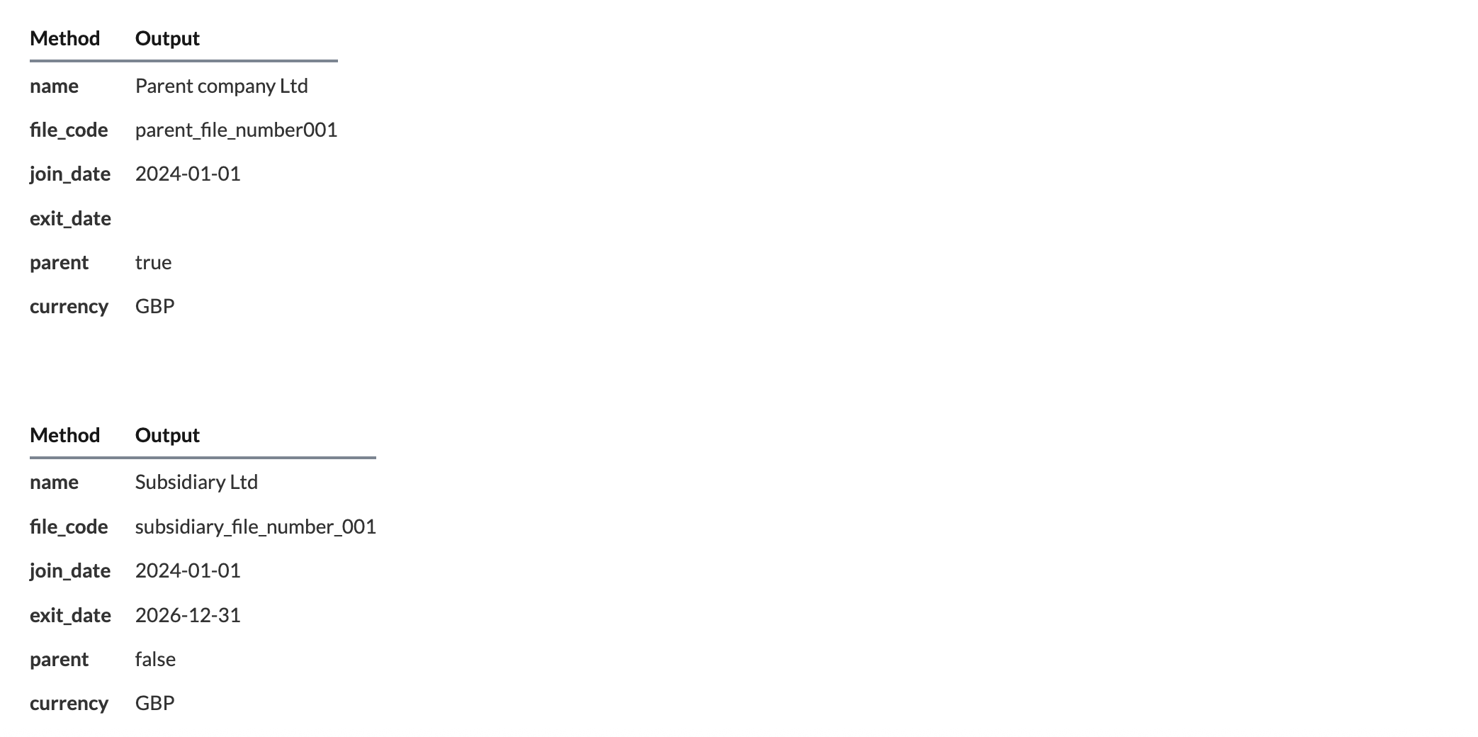 name | string | The company name from the consolidated company settings. |